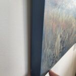 This painting is unframed with edges painted blue. Inquire for custom framing options.