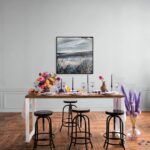 This painting is unframed, painting wraps around the edges (see third photo for example). Please contact us for custom framing.