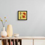 This painting is on cradled wood panel, the sides are painted to match the painting’s background.