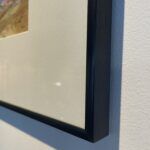 This is a mini acrylic painting on paper, framed with acid-free mat, glass, black aluminum frame. Ready to hang.