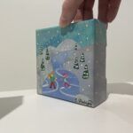 Mixed media painting (collage and acrylics) on canvas with a sawtooth hanger attached to the back for hanging.