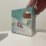 Mixed media painting (collage and acrylics) on canvas with a sawtooth hanger attached to the back for hanging.