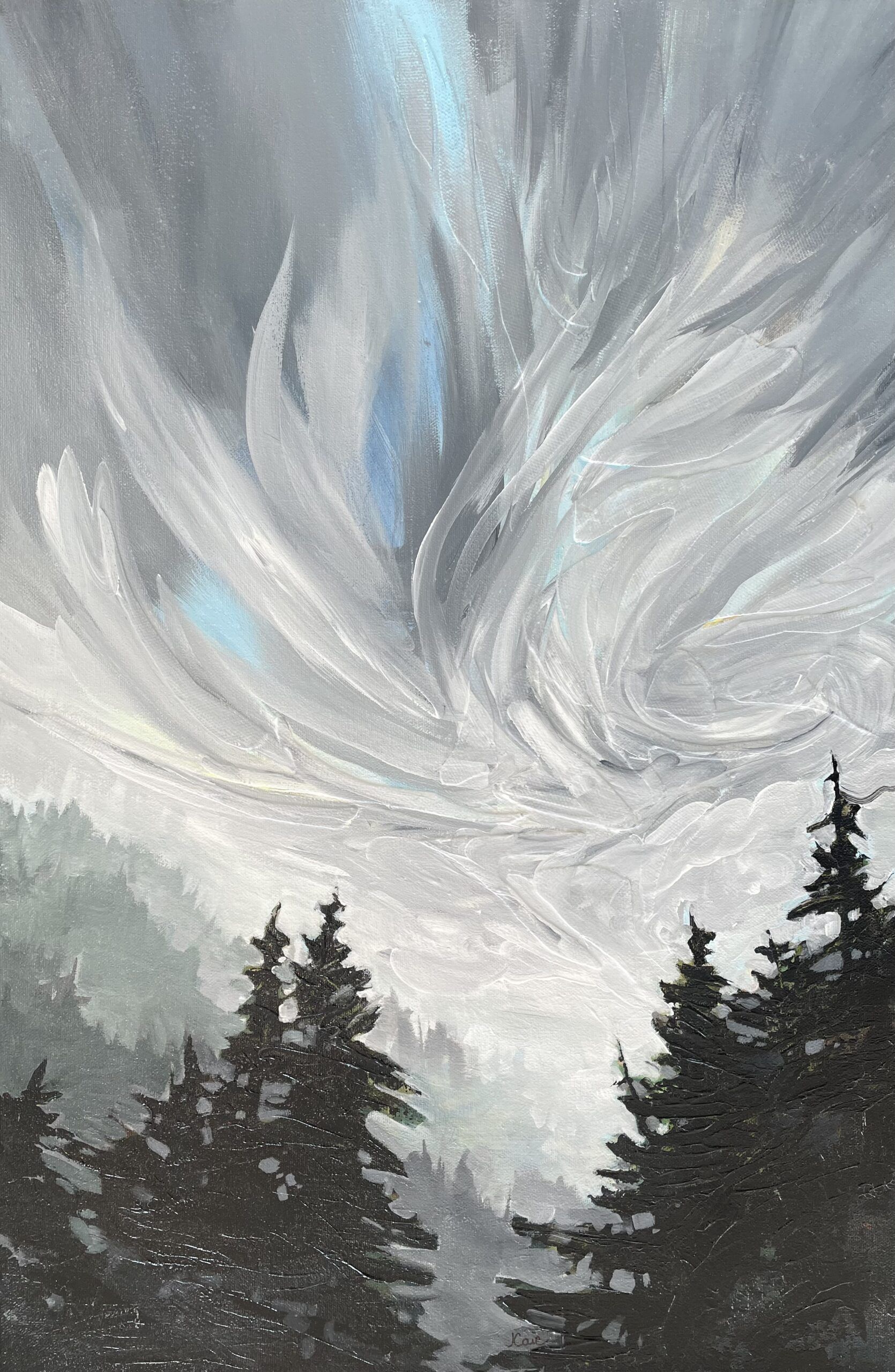 This mixed media painting is on canvas. The edges are painted to match the scene in the painting. Please contact us for custom framing options.