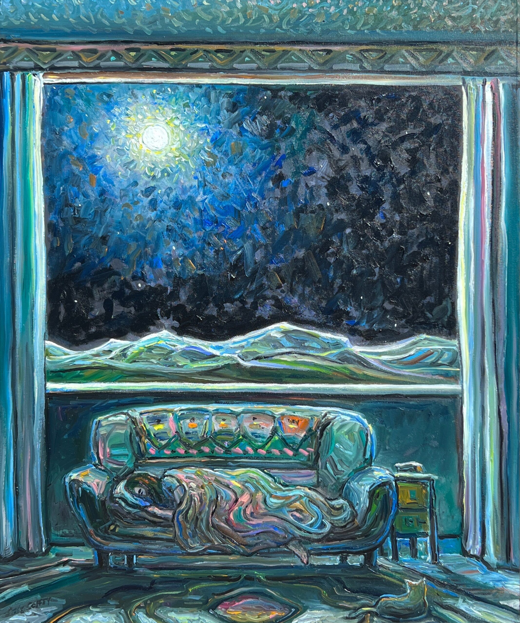 Artist: Steve R. Coffey Title: Her Little Moon Dream Medium: Oil on Canvas Size: 36″ x 30″