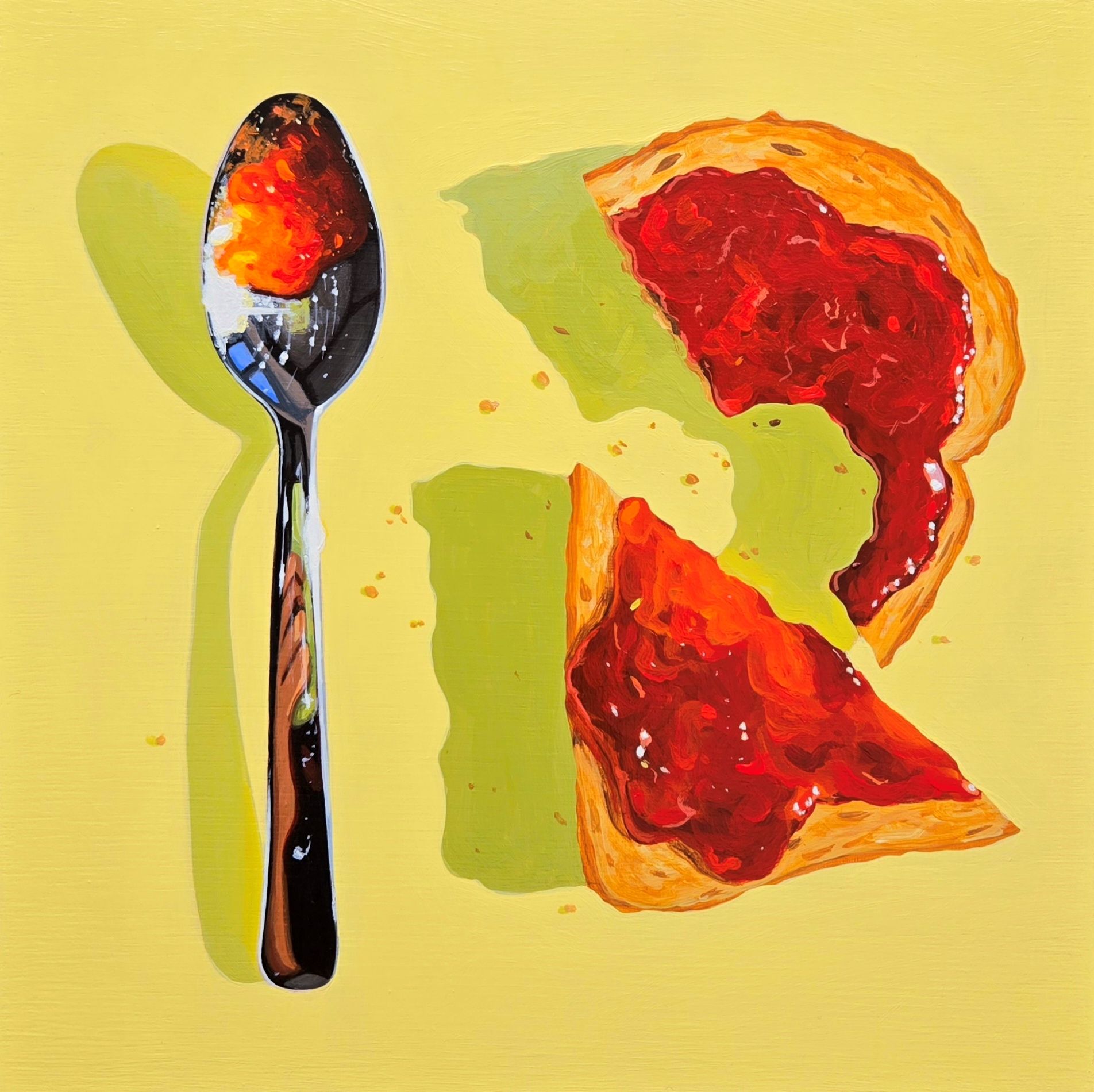 This painting is on cradled wood panel, the sides are painted to match the painting’s background.