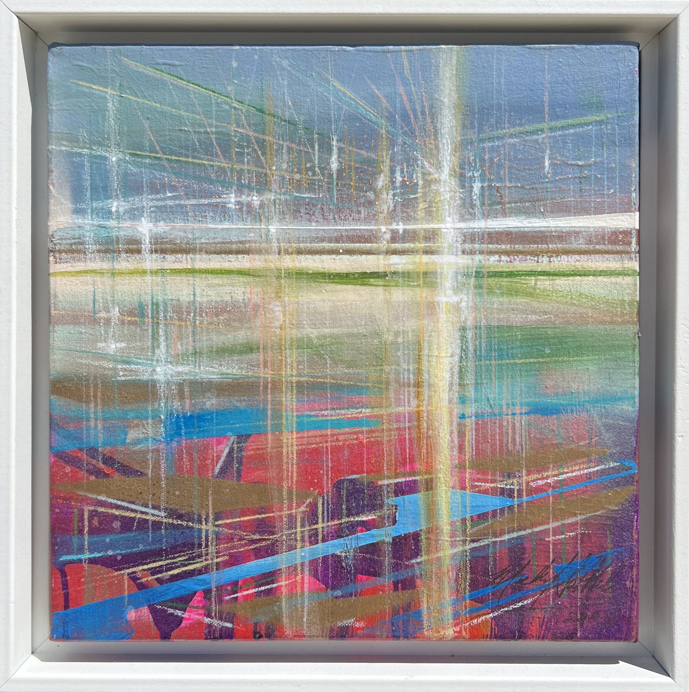 The price includes a white floater frame as shown in the photo. Framed by the artist. Overall size is approximately 14″ x 14″