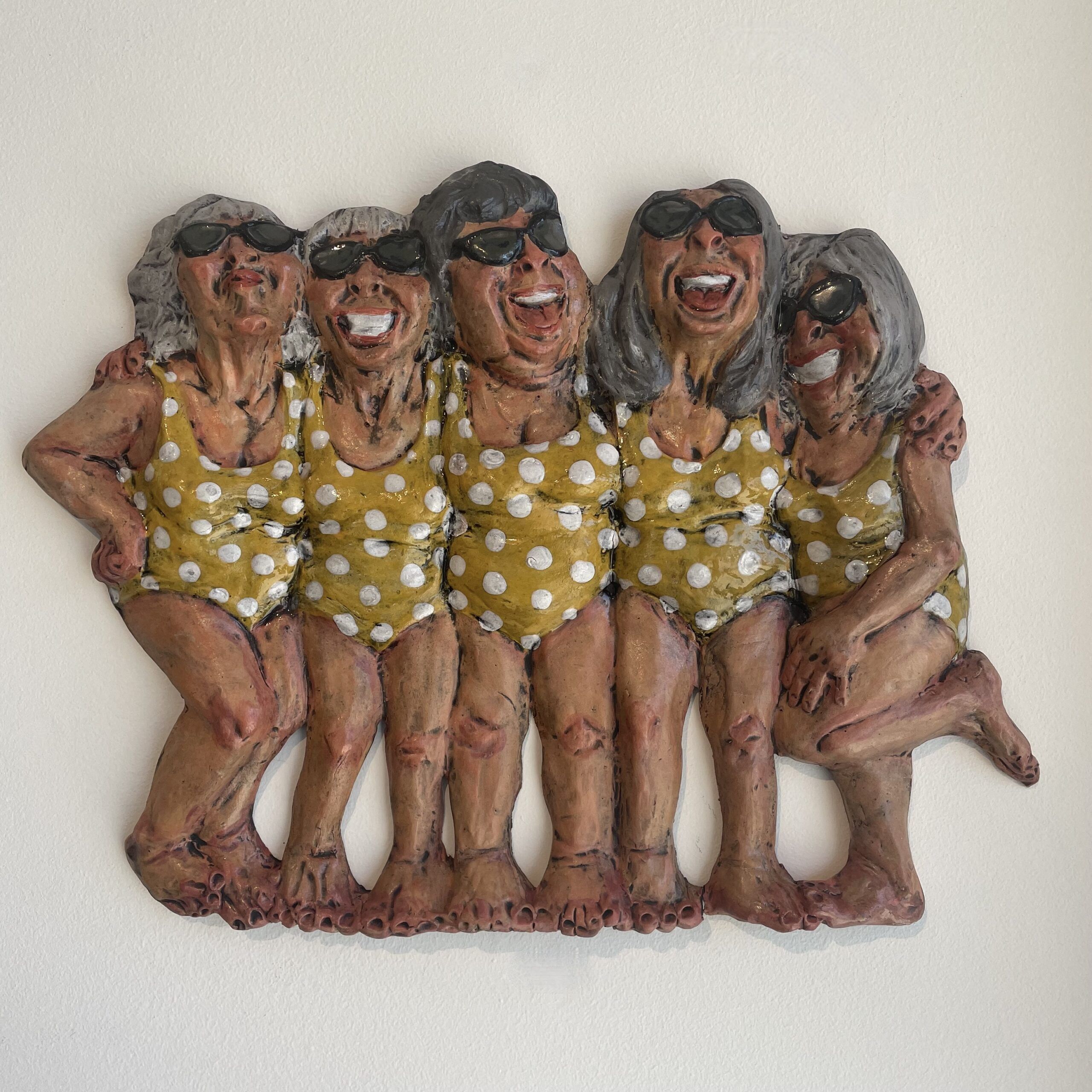 This is a ceramic sculpture equipped with a wire to hang on the wall.